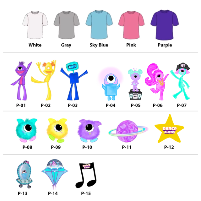 2. Choose the color of your T-Shirt: White, Gray, Sky Blue, Pink, or Purple